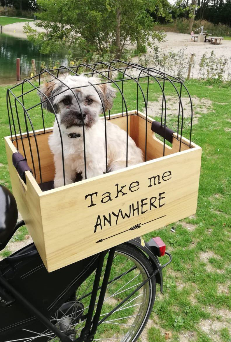 Zie jij jezelf al gaan met jouw hond achter op de fiets dit voorjaar/zomer? Schaf dan deze hippe fietsmand aan en als jouw hond kon praten zou hij zeggen “take me anywhere”. De fietsmand is voorzien van zwart nylon kussen en een draadkap, hierdoor kan jou hond er niet zomaar uit springen dus zeer veilig. De mand is op de fiets te bevestigingen via een universeel kliksysteem en is geschikt voor elke met bagagedrager, waaronder elektrische fietsen.
